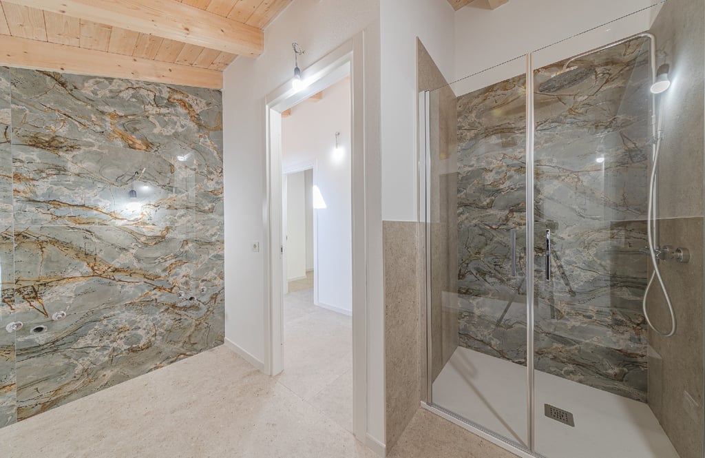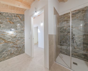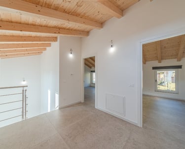 Finiture di prestigio, luce naturale e dettagli esclusivi rendono questa casa unica nel suo genere. Gli ambienti sono inondati da una luminosità eccezionale grazie alle finestre Velux a soffitto e agli infissi in PVC con triplo vetro, che garantiscono comfort e isolamento ottimali. Il design degli interni è curato in ogni dettaglio: pavimenti in gres porcellanato ABK 120x120 della linea Poetry Stone, parapetti in cristallo temperato e moderni controsoffitti con faretti a incasso definiscono uno stile raffinato e contemporaneo. Completa la proprietà un comodo box auto di 18 mq con accesso diretto all’abitazione.